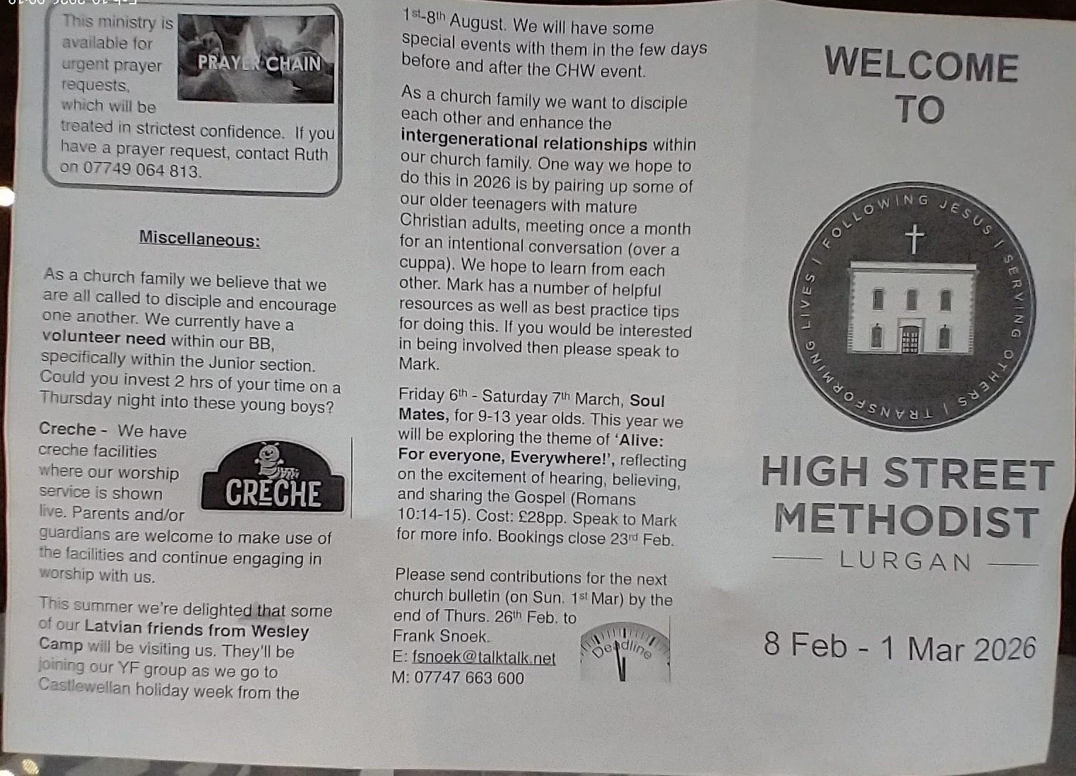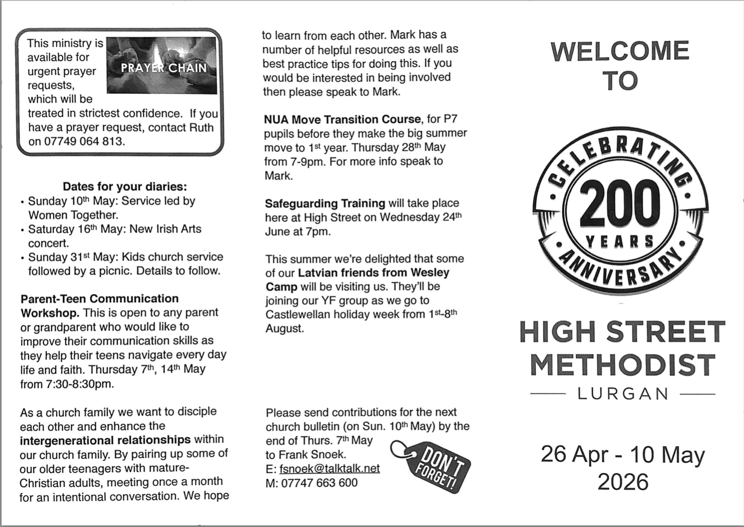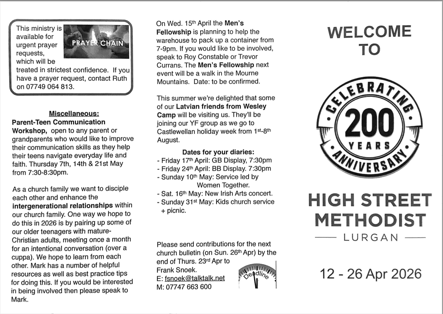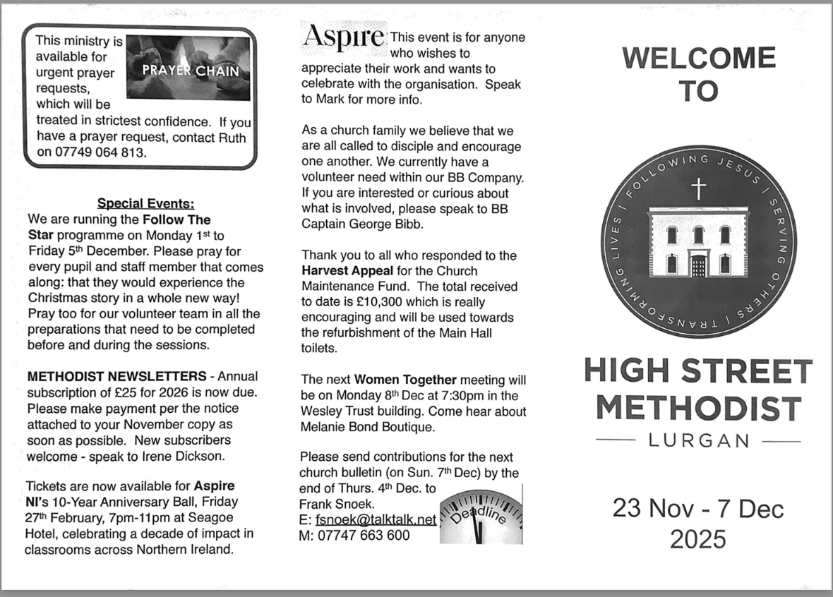Find out everything that’s happening at High Street Methodist.
