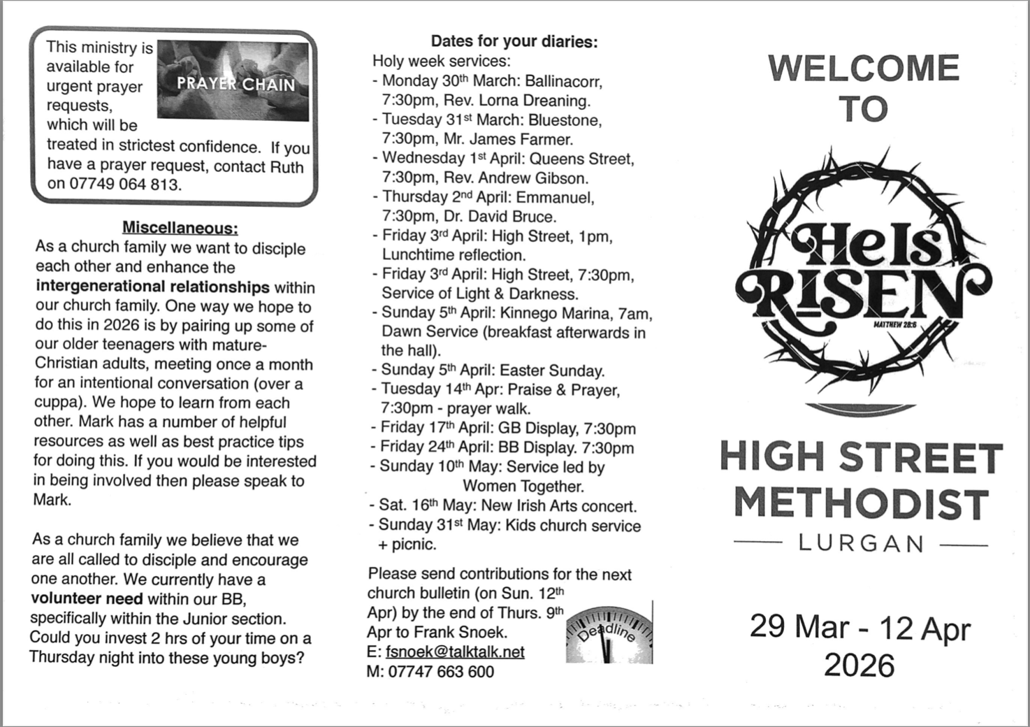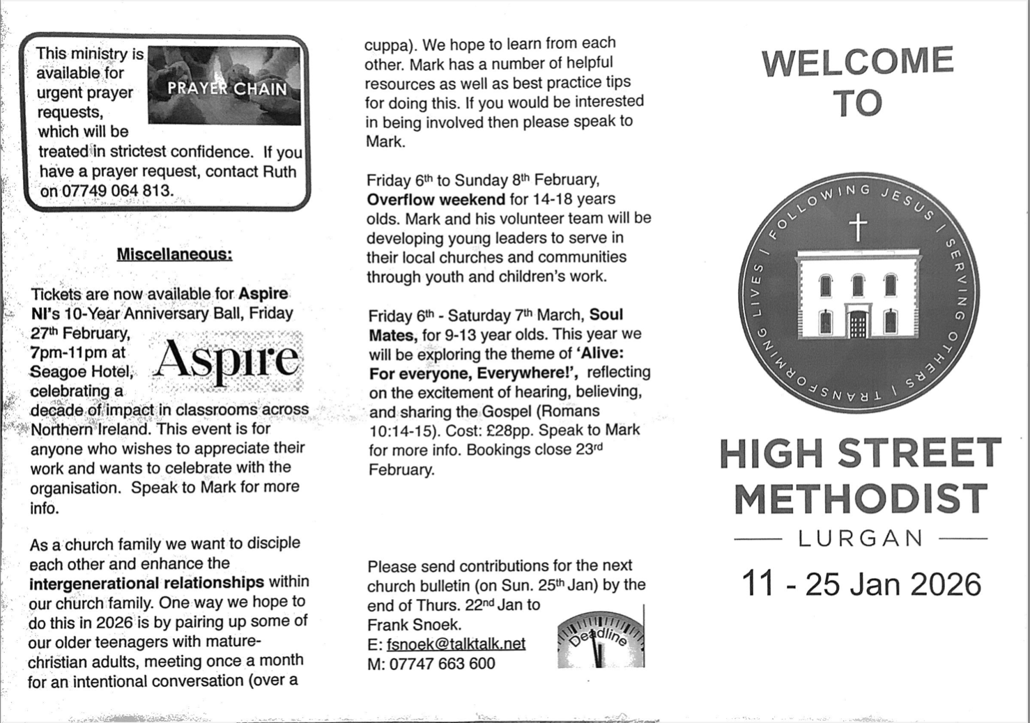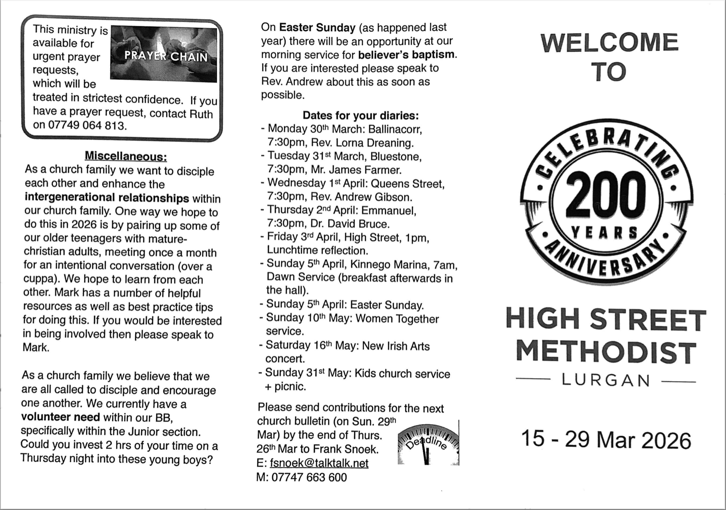 Find out everything that’s happening at High Street Methodist.